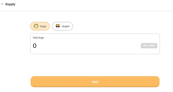 注意:加池子会有超卖的风险,请考虑清楚再添加!(例如你注入 1000dogim,而池内只>=1000dogim,那么无法撤出流动性)
