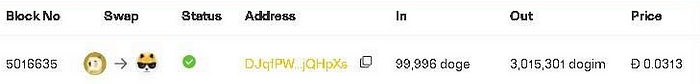 花費99996顆Doge獲得3015301顆dogim 於價格D0.0313時購買